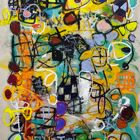 Creating captivating and labor-intensive work with an idea of continuing the legacy of the abstract expressionism movement from the 50s and 60s, Taher Jaoui's paintings are rich assemblages of layered forms, vibrant colors, expressive gestures, and mathematical signs and formulas. Applied on canvas through a dynamic interaction, a physical back and forth dialogue in which perspective and orientation are continuously changed until all the elements are balanced right, these opulent creations are the artist's personal way of expressing himself.